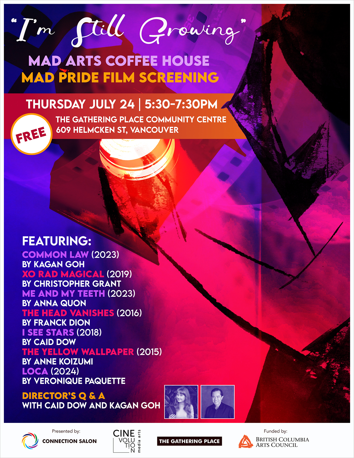 | MAD PRIDE FILM SCREENING --- July 24, 2025 Featuring: Common Law (2023) by Kagan Goh, XO Rad Magical (2019) by Christopher Grant, Me and My Teeth (2023) by Anna Quon, The Head Vanishes (2016) by Franck Dion, I see stars (2018) by Caid Dow, The Yellow Wallpaper (2015) by Anne Koizumi, Loca (2024) by Veronique Paquette ~ Director’s Q & A with Caid Dow and Kagan Goh » VIEW POSTER | ||