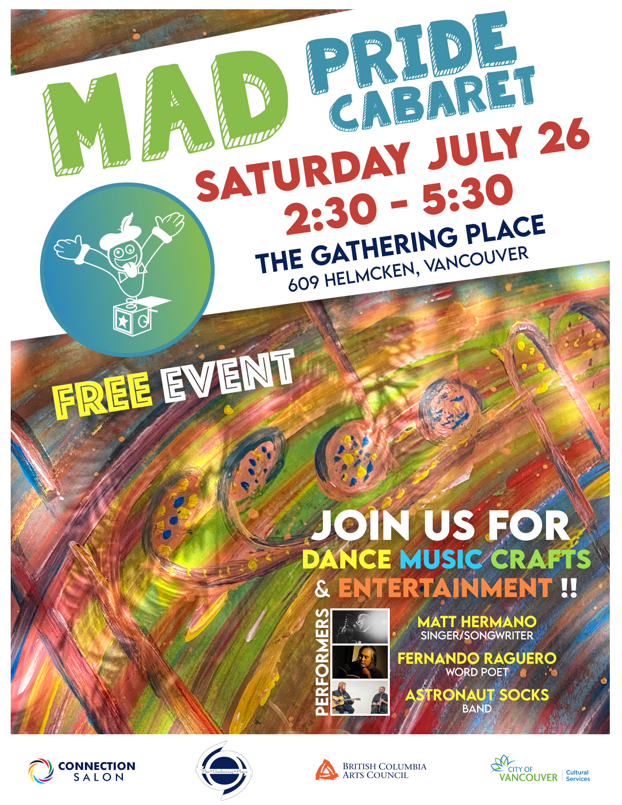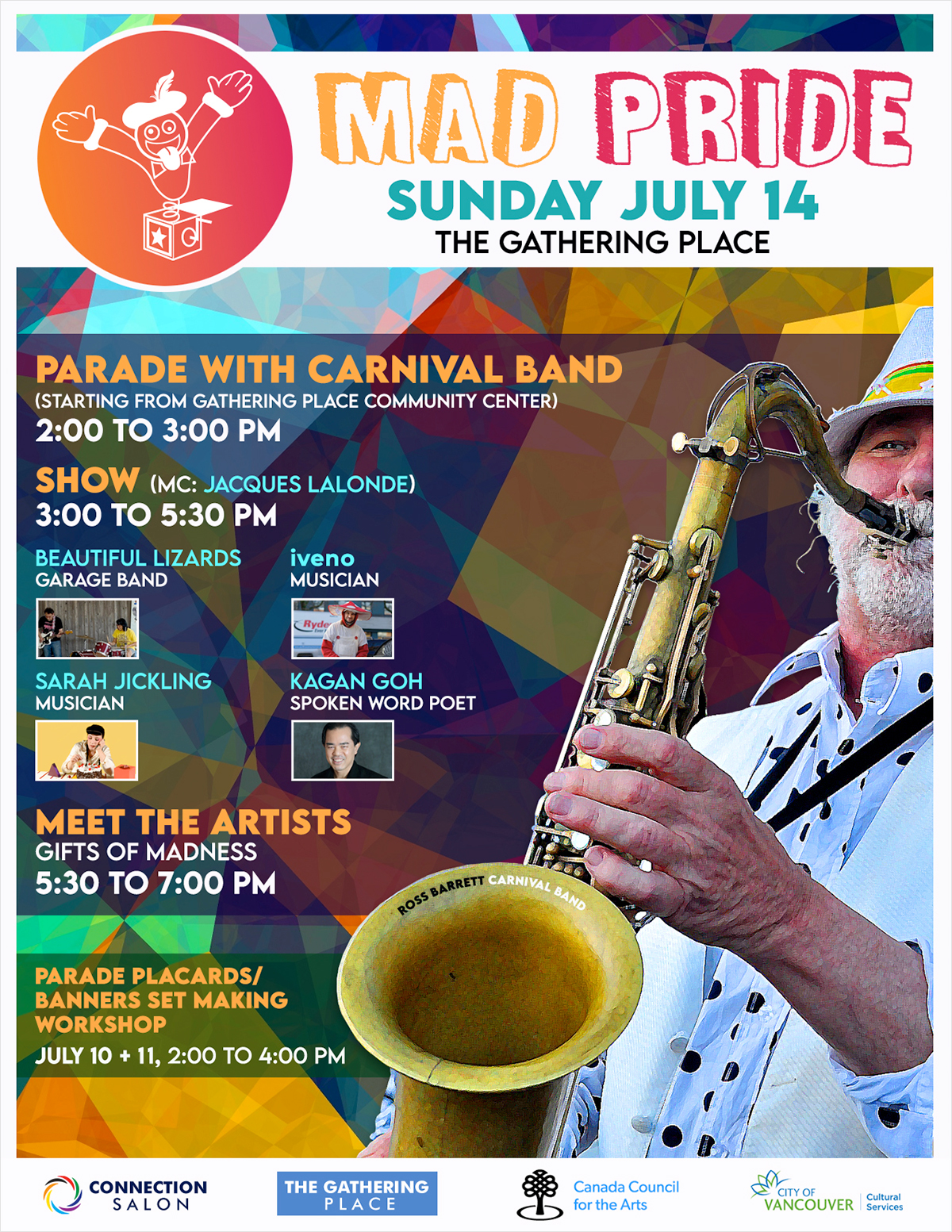 | MAD PRIDE CABARET --- July 14, 2024 Performers: Beautiful Lizards, Sarah Jickling, iveno, Kagan Goh MC: Jacques Lalonde » VIEW POSTER | ||